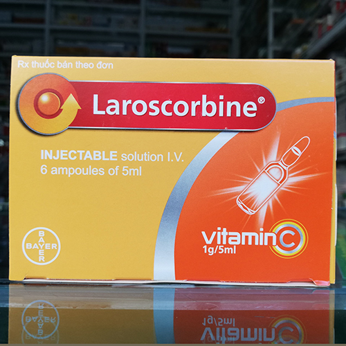 Thuốc Laroscorbine 1g/5ml - Bayer được bào chế dưới dạng dung dịch tiêm. Trước khi tiêm bệnh nhân nên được khử trùng, làm sạch tại chỗ tiêm và các dụng cụ y tế khác. Bạn không nên tiêm vitamin C vào thời điểm cuối ngày.