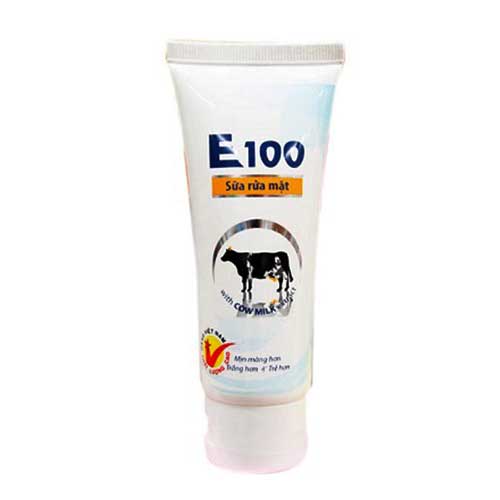 Sữa rửa mặt E100 với tinh chất sữa bò có tính năng loại bỏ vẩy tế bào khô, diệt khuẩn gây mụn cám và làm sạch sâu bề mặt da, cho làn da tươi trẻ sáng mịn