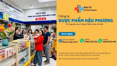 Công ty TNHH Thương mại và Dược phẩm Hậu Phương – Quầy 119, Chợ thuốc Hapulico, là đơn vị uy tín trong lĩnh vực phân phối dược phẩm, thực phẩm chức năng, mỹ phẩm và dụng cụ y tế tại Hà Nội. Với đầy đủ giấy phép pháp lý, nhiều năm kinh nghiệm và vị trí kinh doanh tại trung tâm dược phẩm lớn nhất miền Bắc, chúng tôi cam kết mang đến sản phẩm chính hãng, giá tốt và dịch vụ chuyên nghiệp nhất cho Quý khách hàng và đối tác trên toàn quốc.