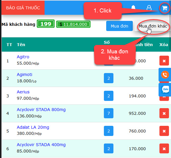 3. Đơn mới (Sau khi tạo xong đơn mới khách hàng mới nhặt thuốc, nếu không tạo đơn mới thuốc khách hàng nhặt sẽ vào đơn ngay trước đó)